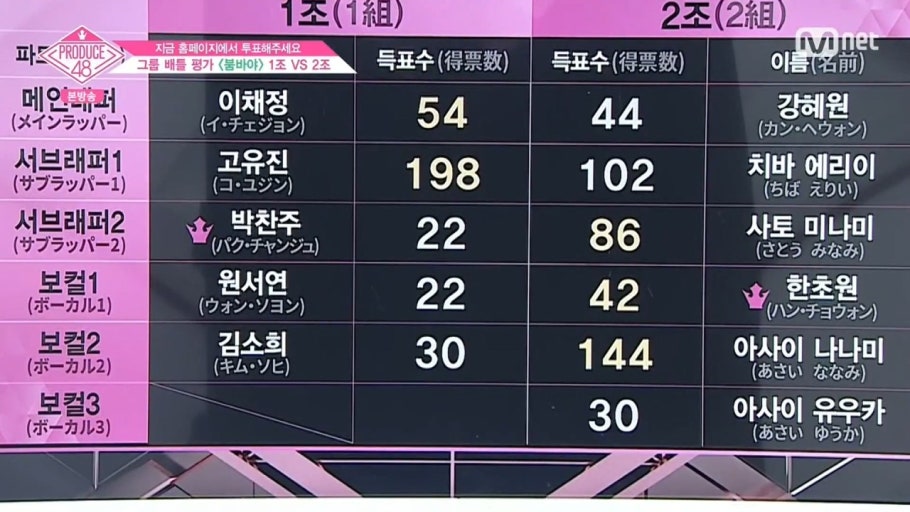 2組はじゃんけんでセンターを決めようとしたり、日韓の壁が出来上がってしまっていて、見ていて夢がないチームになってしまって、あ~・・・